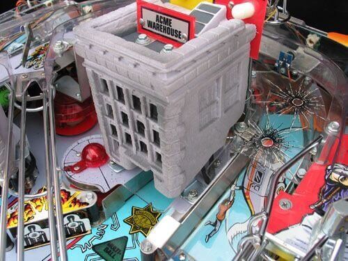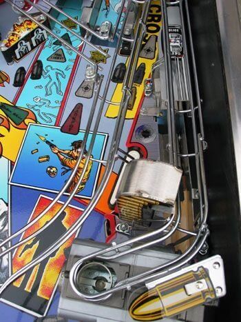 Moving .44 Magnum on playfield is used to shoot pinballs at targets, sinkhole, and ramp. Magnet in right loop.