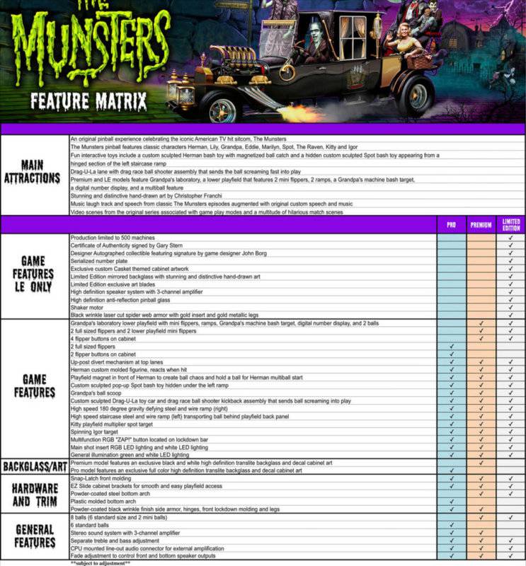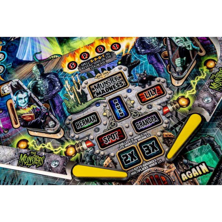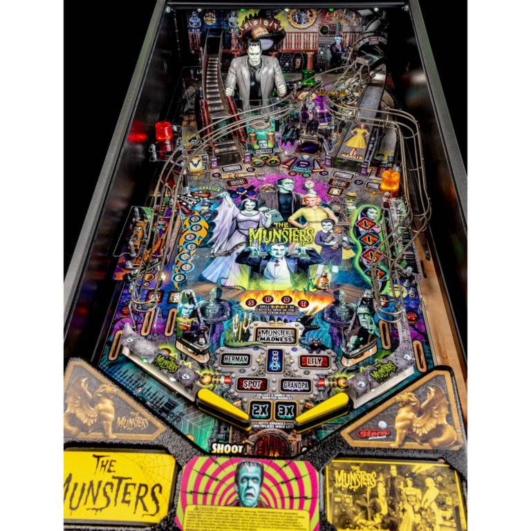 An original pinball experience celebrating the iconic American TV hit sitcom, The Munsters. Players will be transported to 1313 Mockingbird Lane, joining the entire Munsters family on this haunted pinball adventure. Featuring Herman, Raven, Lily, Spot and Grandpa, players will work their way towards Munster Madness in this frightfully funny and action-packed pinball world under glass. The Munsters pinball machines will be available in Pro, Premium, and Limited Edition models.